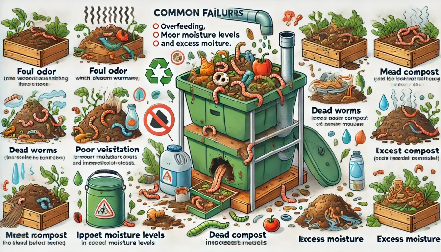 また、湿度が適切に保たれない場合、ミミズが乾燥してしまったり、逆に過湿状態になり酸素不足を引き起こすことがあります。さらに、投入する食材の量が多すぎると、ミミズが消化しきれずに未分解のまま腐敗が進み、悪臭や害虫の発生を招きます。
