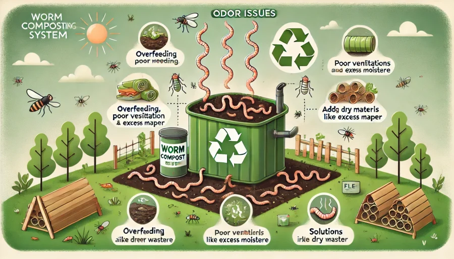 ミミズコンポストにおける臭い問題は、適切な管理が行われていない場合に発生しやすくなります。特に、湿度が高すぎると有機物が過剰に分解され、嫌気性分解が進行するため、悪臭の原因となります。